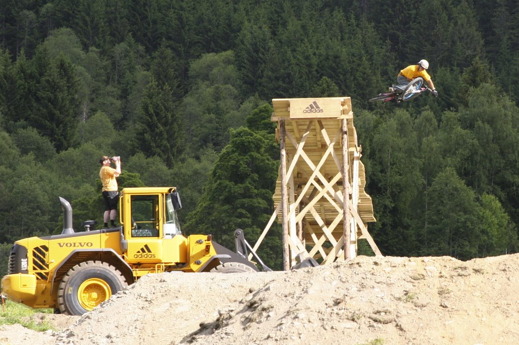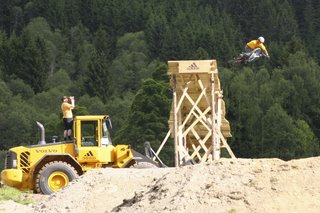 I'm currently taking a trip around Europe and was lucky enough to be in Saalbach in Austria this weekend for the Adidas Slopestyle. The event went off and Bearclaw threw down once again. The organizers did a really good job of hosting the event and the course designers built an insane run with a good mix of dirt jumps and built stunts. The level of riding was ridiculous - some new faces turning heads and some of the regulars riding well. There was a bit of physical carnage which is always tough to witness, but nothing too serious.